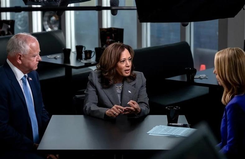 وبعد ضغوط من أجل الجلوس لإجراء مقابلة جوهرية بعد أسابيع من المماطلة، وافقت هاريس على الجلوس مع مراسلة شبكة «سي.إن.إن» دانا باش، في جورجيا، وانضم إليها زميلها المرشح لمنصب نائب الرئيس تيم والز.