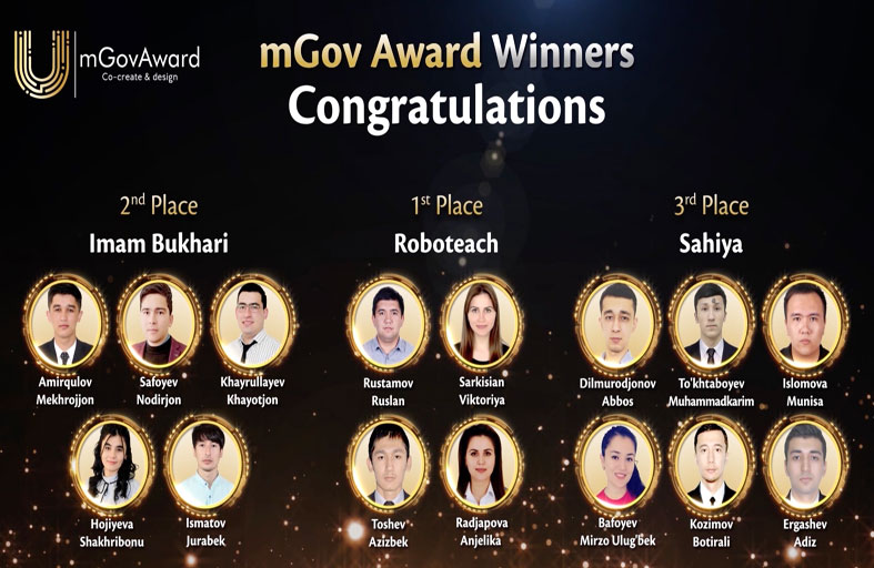 وفاز بالمركز الأول في جائزة أفضل تطبيق خدمات حكومية لطلاب الجامعات في أوزبكستان، تطبيق "ٌRoboteach" لتعليم اللغة الإنجليزية "عن بعد"، وحصل الفريق الذي طور التطبيق على 50 ألف دولار أمريكي، ويتضمن التطبيق دروساً وتدريبات واختبارات متدرجة، ويبدأ التعليم خطوة بخطوة ما يسهل على المتعلمين تطوير أنفسهم وإمكاناتهم في اللغة الإنجليزية.