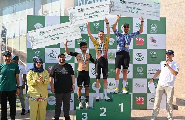 كرمت إدارة نادي ضباط شرطة دبي، ومجلس الروح الإيجابية، الفائزين بسباق "الروح الإيجابية" للدراجات الهوائية للمُحترفين الذي أقيم في النادي، بمشاركة 122 متسابقاً، من بينهم 92 متسابقاً و30 مُتسابقة.