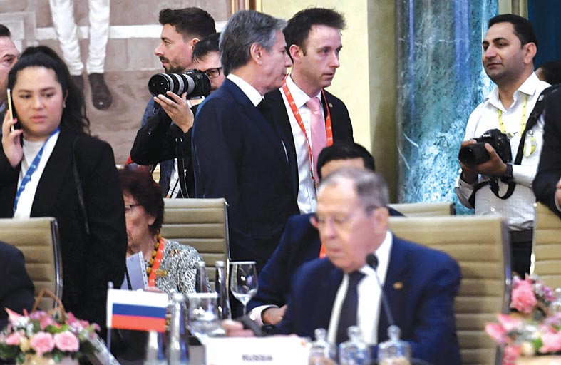 تجادلت الولايات المتحدة وحلفاؤها الأوروبيون مع روسيا بشأن الحرب في أوكرانيا، خلال اجتماع لوزراء خارجية مجموعة العشرين في نيودلهي امس الخميس، إذ اتهم كل جانب الآخر بزعزعة استقرار العالم.