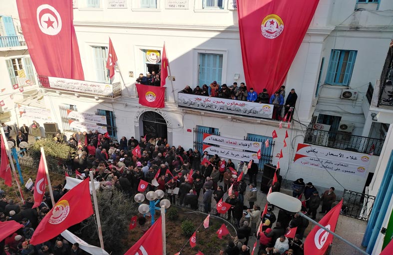 ودعا الاتحاد كلّ الكتل النيابية بإعلان موقفها الرسمي من حملات التحريض التي تستهدفه من طرف طيف محدد من النواب وإدانة المحرضين عليه وعلى رموز الحركة النقابية، لاسيما أمام “الصمت الرسمي المريب بمجلس نواب الشعب عن خطورة الممارسات المستمرة من بعض النواب لاستهداف المنظمة ولعديد أطياف المجتمع المدني».