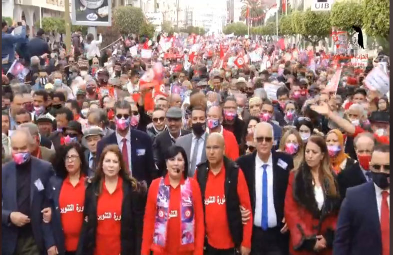 في اخر باروميتر السياسي لشهر مارس 2021 الذي يُصدره معهد ايمرود لاستطلاعات الرأي، كانت اجابةُ 39 بالمائة من المستجوبين بأنهم ينوون التصويت لقائمات الدستوري الحر، بفارق جيد على حركة النهضة 22 بالمائة، بينما تحصل قلب تونس على 8 بالمائة من مجموع نوايا التصويت، وتحصلت القائمات المستقلة على 5 بالمائة، والتيار الديمقراطي 6 بالمائة، ثم حركة الشعب 4 بالمائة.