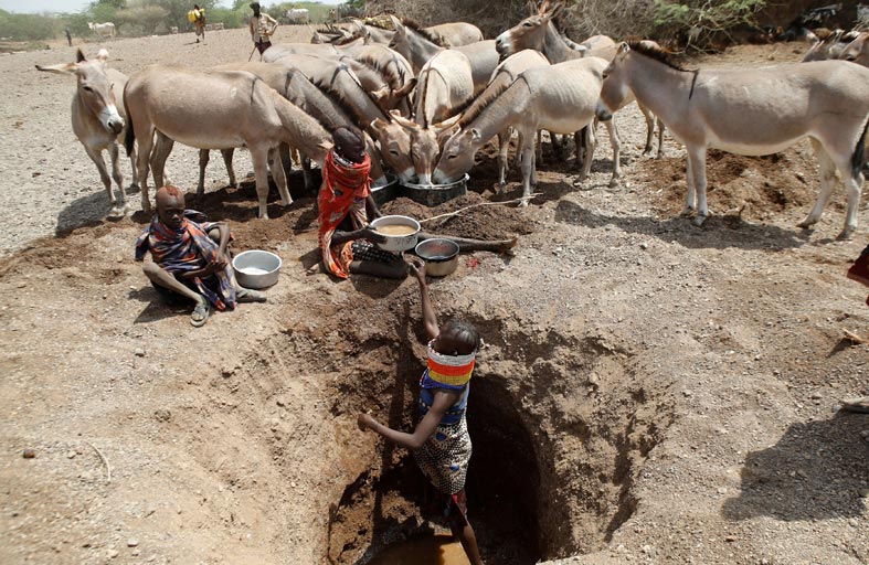 ويعيش السكان في كينيا في أكثر الظروف جفافًا منذ مطلع الثمانينيات بعدما شهدت البلاد أربعة مواسم أمطار غير كافية في ظلّ تغيّر المناخ.
