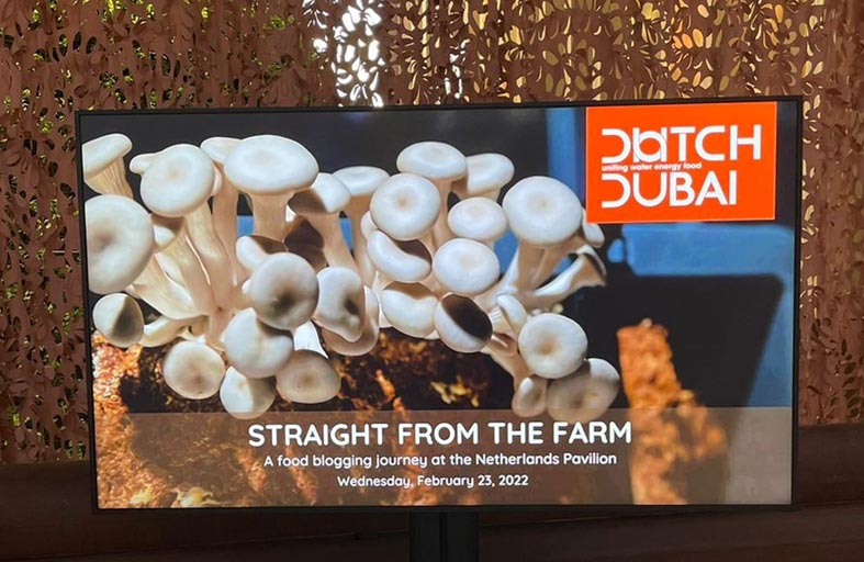 و اصطحب الجناح المشاركين خلال فعالية "مباشرة من المزرعة"، بالتزامن مع "أسبوع الغذاء والزراعة وسبل العيش" في إكسبو 2020، في جولة لإلقاء نظرة على تصميم جناحها المُستدام بيئيا ومزرعتها العمودية المُصممة على شكل مخروط، ومشتل الفطر الخاص بها، لتعريفهم بالإمكانيات التي تمتاز بها الزراعة المستدامة في المساحات الحضرية الصغيرة.