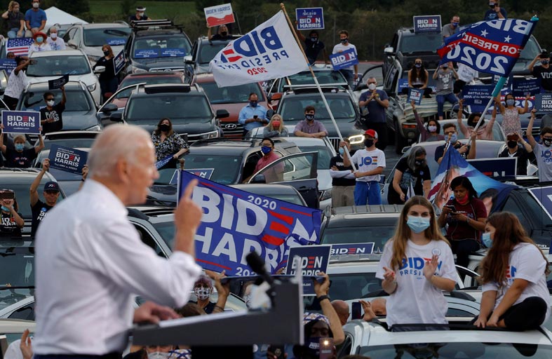 وتظهر استطلاعات الرأي أن المرشح الديمقراطي، جو بايدن حصل على 47.6 بالمئة، مقابل 41.1 بالمئة لترامب، الذي قلّص الفارق بين بواقع 0.8 نقطة مئوية خلال أسبوع فقط.