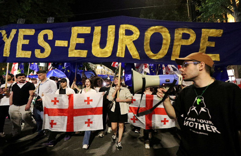 شارك نحو 20 ألف جورجي في «مسيرة من أجل أوروبا» طالبوا خلالها الحكومة بإلغاء مشروع قانون «النفوذ الأجنبي» المثير للجدل الذي حذر الاتحاد الأوروبي من أنه قد يقوّض تطلعات تبليسي للانضمام إلى التكتل.