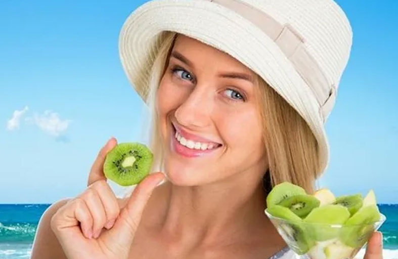 وأظهرت الدراسة، التي أجراها باحثون من جامعة أوتاجو النيوزيلندية على متطوعين في نيوزيلندا وألمانيا، أن تناول حبتين من الكيوي يوميًّا لمدة ثمانية أسابيع، أي ما يعادل نحو 250 ميكروغرامًا من فيتامين C، يؤدي إلى تحسين ملموس في وظائف الجلد.