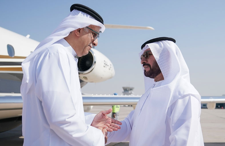 استقبل معالي الشيخ حمدان بن مبارك آل نهيان رئيس اتحاد الإمارات لكرة القدم أمس ، معالي الشيخ سلمان بن إبراهيم آل خليفة رئيس الاتحاد الآسيوي لكرة القدم لدى وصوله والوفد المرافق مطار البطين في العاصمة أبوظبي.