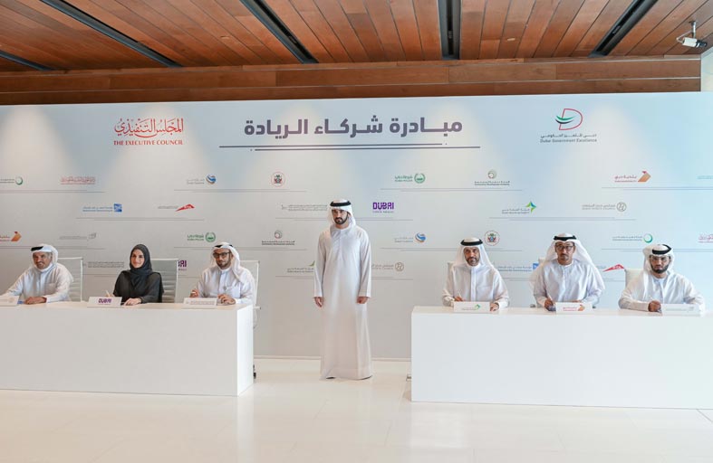 وشهدت مبادرة "شركاء الريادة" في دورتها الأولى توقيع 7 اتفاقيات شراكة بين 14 جهة حكومية، تشمل: هيئة كهرباء ومياه دبي ودائرة الموارد البشرية لحكومة دبي، وشرطة دبي وهيئة تنمية المجتمع، وهيئة الطرق والمواصلات ومؤسسة محمد بن راشد للإسكان، والإدارة العامة للإقامة وشؤون الأجانب وهيئة دبي للثقافة والفنون، وجمارك دبي ودائرة الشؤون القانونية لحكومة دبي، وبلدية دبي ومؤسسة الأوقاف وشؤون القصر، وهيئة الصحة بدبي ومجلس دبي الرياضي.