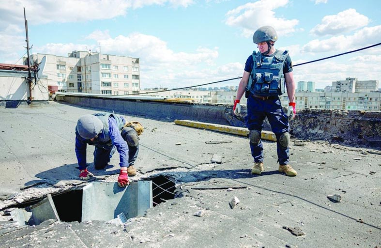 في خاركيف ثاني مدينة في أوكرانيا تقع في شمال شرق البلاد وتستهدفها الصواريخ الروسية بلا توقف، تتلقى خدمة الطوارئ اتصالات يرد عليها خبراء إزالة الألغام للتوجه إلى مواقع من أجل نزع بقايا المقذوفات الخطيرة.