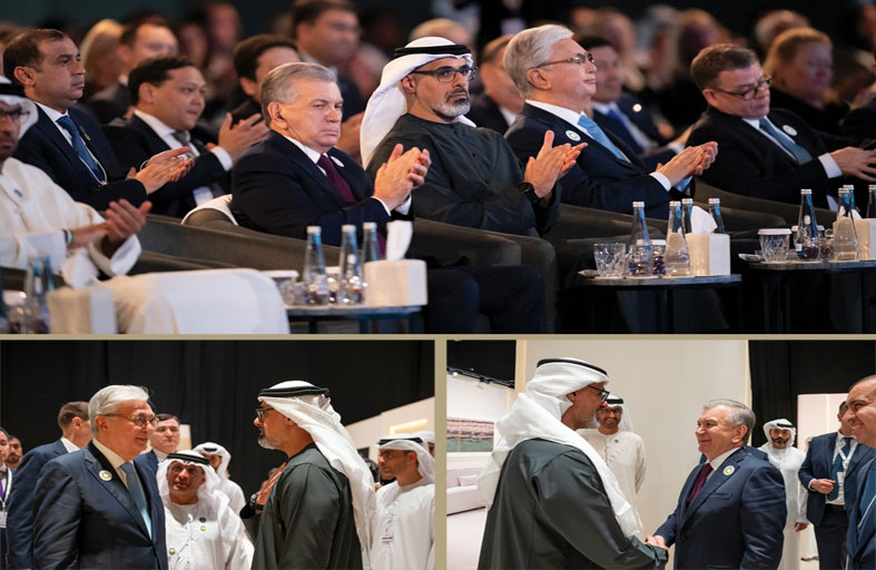 وشهدت الجلسة الحوارية إلقاء فخامة قاسم جومارت توكاييف، رئيس جمهورية كازاخستان، كلمة رئيسية بعنوان "نحو نموذج جديد للتطوير: المرونة، والنمو، والاستدامة"؛ وكلمة رئيسية لفخامة شوكت ميرزاييف، رئيس جمهورية أوزبكستان، بعنوان "رحلة أوزبكستان من طريق الحرير القديم إلى وجهة للابتكار الأخضر".