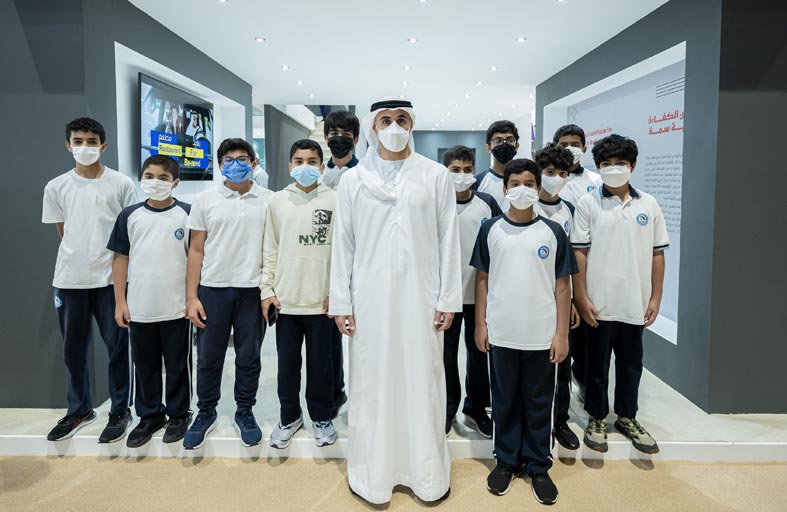 والتقى سموّه مجموعة من طلبة المدارس أثناء مشاركتهم في ورش عمل حول أهمية ترسيخ ثقافة القراءة. رافق سموّه، أثناء زيارته للمعرض، معالي معالي محمد خليفة المبارك رئيس دائرة الثقافة والسياحة - أبوظبي.