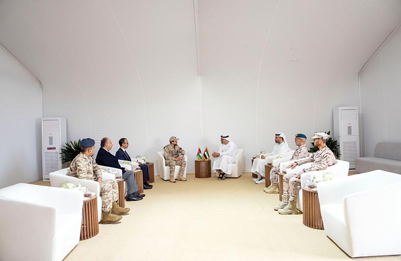 كما تناول اللقاء أهمية توسيع آفاق التعاون والشراكة بين البلدين في العديد من القطاعات الحيوية التي تشكل مرتكزات رئيسة للتنمية والتقدم.  حضر اللقاء..معالي حميد عبيد أبو شبص رئيس ديوان المحاسبة والفريق الركن مهندس عيسى سيف بن عبلان المزروعي نائب رئيس أركان القوات المسلحة واللواء الركن سعيد راشد الشحي قائد القوات البرية وسعادة نصار الحباشنة سفير الأردن لدى الدولة والدكتور زيد البقاعين مدير مكتب ولي عهد الأردن وعدد من المسؤولين.