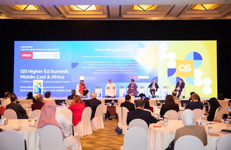 اختتمت أعمال " قمة كيو أس للتعليم العالي للشرق الأوسط وإفريقيا التي استضافتها جامعة الإمارات العربية المتحدة على مدى الأيام الثلاثة الماضية " تحت شعار "البيئات التمكينية للابتكار". وشهد المؤتمر حضوراً مميزًا لأكثر من 200 مسؤول وخبير من المنطقة والعالم لرسم خارطة مستقبلية للمؤسسات التعليمية في المنطقة.