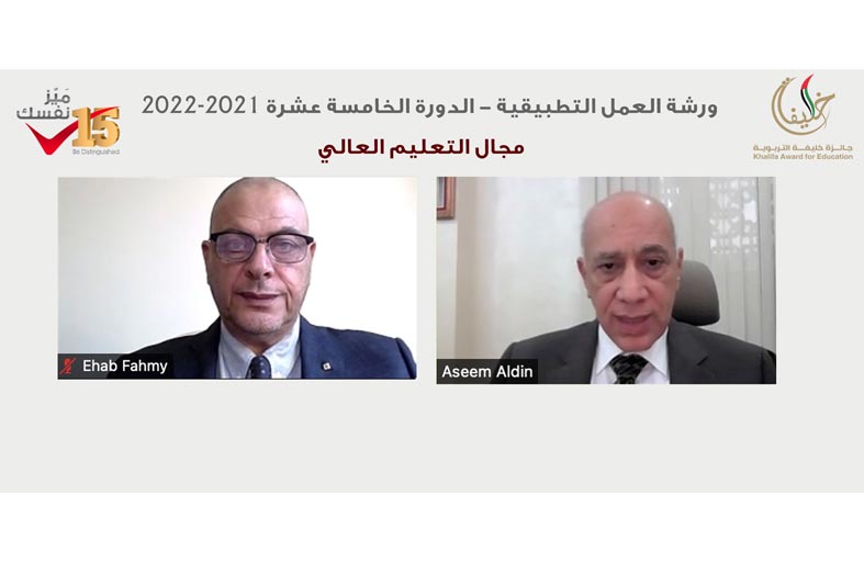 وأشارت إلى حرصها الدائم في مختلف الدورات على طرح مجال التعليم العالي على مستوى الدولة والوطن العربي وتندرج تحته فئة الأستاذ الجامعي المتميز وذلك إدراكاً من الجائزة بأهمية هذا المجال ودور عضو هيئة التدريس المتميز في الارتقاء بمنظومة التعليم بصورة عامة .. مشيرة إلى أن التميز يعتبر ركيزة أساسية لنهضة التعليم في العصر الرقمي وتلبية متطلبات الخمسين المقبلة كما أن التميز من قبل عضو هيئة التدريس يفتح آفاقاً واسعةً لاستقطاب المواهب الطلابية ورعايتها وتعزيز دورها على طريق التميز . جاء ذلك خلال ورشة العمل التطبيقية التي نظمتها الأمانة العامة لجائزة خليفة التربوية عن بعد بعنوان " مجال التعليم العالي " . وتطرق الدكتور عصام الدين عجمي محكم مجال التعليم العالي إلى حرص جائزة خليفة التربوية على طرح مجال التعليم العالي وتحديد فئة الأستاذ الجامعي المتميز لتكريم المبدعين والمتميزين من أعضاء هيئات التدريس في مؤسسات التعليم العالي محلياً وعربياً .. مشيراً إلى أن الجائزة ترى أن الأستاذ الجامعي هو كلّ من يعمل في مجال التدريس والبحث العلمي بمؤسّسات التعليم العالي المختلفة الرسمية أو الخاصة في مختلف التخصصات المُعترف بها من قبل وزارة التعليم العالي داخل دولة الإمارات أو وزارة التعليم العالي في الدولة التي يتقدّم منها المرشح للجائزة وهو مجال خاص بالأساتذة الجامعيين الذين يقومون بتدريس المساقات .