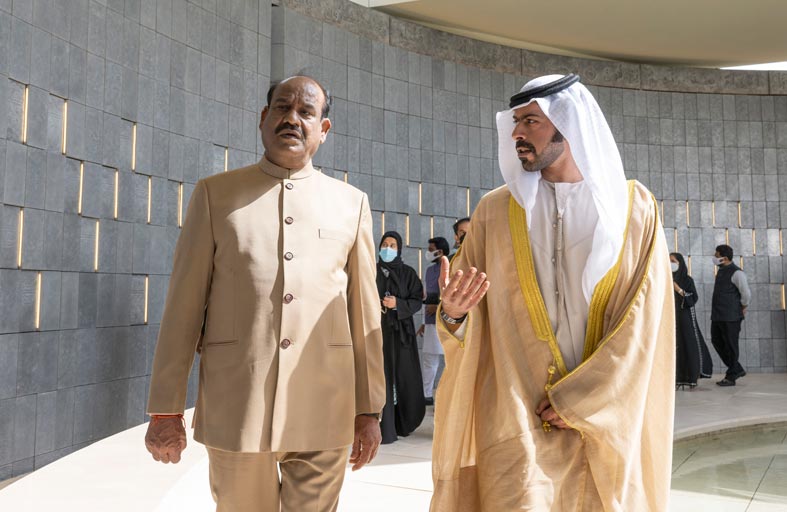خليفة بن طحنون يستقبل رئيس مجلس الشعب الهندي في واحة الكرامة