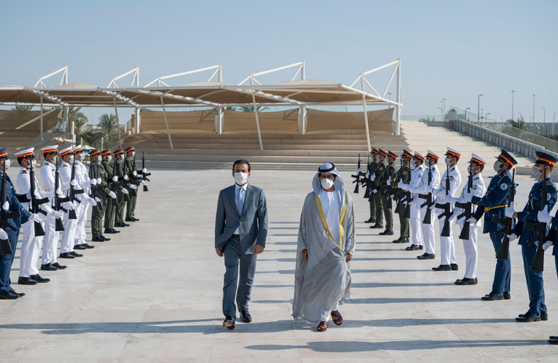 خليفة بن طحنون يستقبل رئيس مجلس النواب العراقي في واحة الكرامة