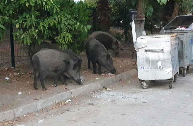 زاد عدد قطعان الخنازير البرية التي تعيش في مدينة إزمير التركية بشكل لافت، إذ تجوب الشوارع والأزقة بين المنازل السكنية والسيارات العابرة، في ظاهرة ترتبط بتدهور المناخ العالمي. وأظهرت مقاطع فيديو وصور، التقطها سكان محليون في عدة مناطق من المدينة المطلة على بحر "إيجه" في غربي تركيا، مجموعات كثيرة من الخنازير تسير ببطء أو متوقفة لتناول الطعام قرب حاويات قمامة أو في الحدائق. ويتركز وجود الخنازير بشكل رئيس في مناطق "بالتشوفا" و"بورنوفا" و"نارلي ديري" في إزمير، وخلال ساعات الليل خصوصًا، رغم ظهور بعضها في النهار.