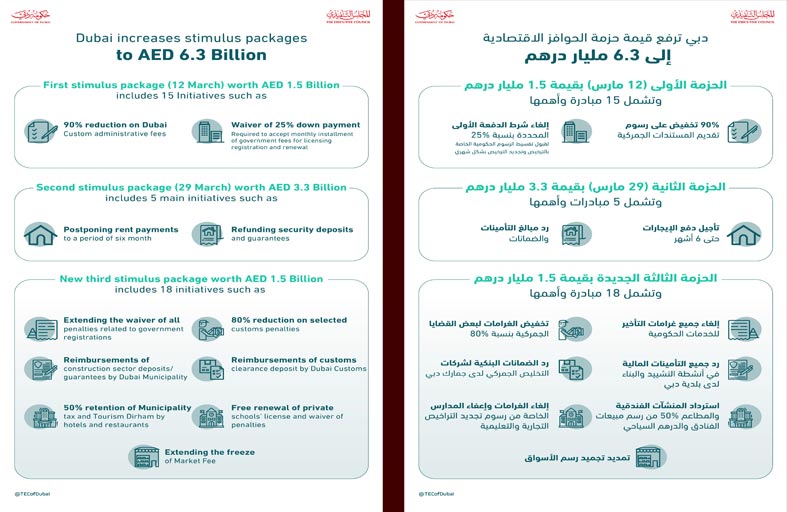 دبي ترفع قيمة حزم التحفيز إلى 6.3 مليار درهم بإطلاق حزمة اقتصادية ثالثة قيمتها 1.5 مليار درهم
