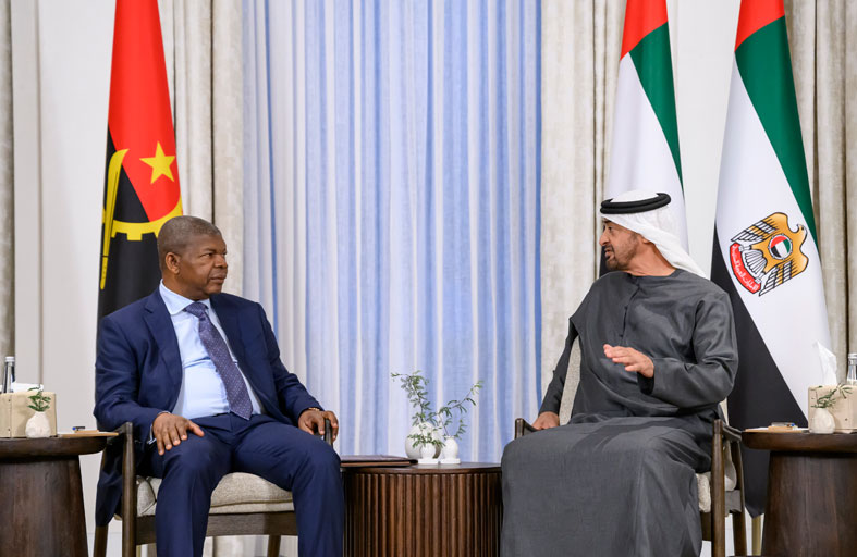 بحث صاحب السمو الشيخ محمد بن زايد آل نهيان رئيس الدولة (حفظه الله) وفخامة جواو مانويل لورينسو رئيس جمهورية أنغولا.. العلاقات الثنائية بين البلدين الصديقين وسبل دعمها وتنميتها بما يعود بالخير والنماء على البلدين وشعبيهما الصديقين.