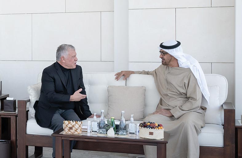 جاء ذلك خلال استقبال صاحب السمو رئيس الدولة أخاه جلالة الملك عبدالله الثاني بن الحسين أمس في قصر الشاطىء بأبوظبي.