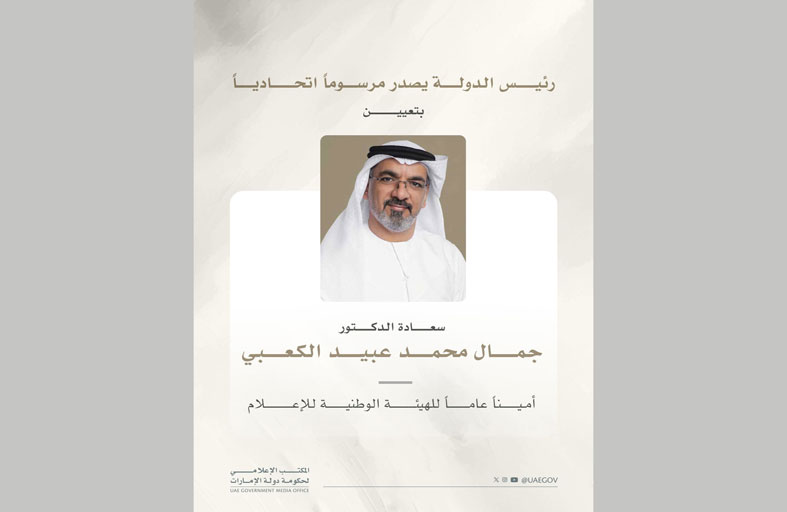 رئيس الدولة يصدر مرسوماً اتحادياً بتعيين جمال محمد الكعبي أميناً عاماً للهيئة الوطنية للإعلام