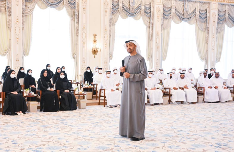 استقبل صاحب السمو الشيخ محمد بن زايد آل نهيان رئيس الدولة "حفظه الله" امس أوائل الطلاب والطالبات في الصف الثاني عشر للعام الدراسي لعام 2021 ــ 2022 وأولياء أمورهم وعددا من القيادات والكوادر التربوية والتعليمية في الدولة.