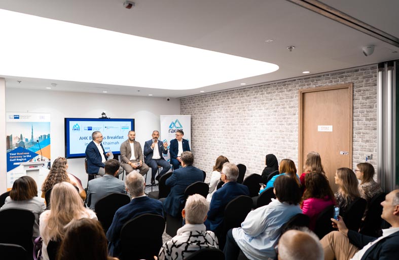 نظمت هيئة مناطق رأس الخيمة الاقتصادية (راكز) بالتعاون مع المجلس الألماني الإماراتي المشترك للصناعة والتجارة فعالية إفطار عمل ناجحة في إمارة رأس الخيمة بهدف تعزيز التواصل بين المستثمرين الألمانيين والشركات العالمية العاملة في الدولة، حيث ألقت الآنسة أوتي برون، مساعد القنصل العام لجمهورية ألمانيا الاتحادية كلمة ترحيبية في الفعالية التي شهدت مشاركة ممثلين رفيعي المستوى لأهم الجهات الرسمية العاملة في الإمارة. ومثلت الفعالية كذلك منصة لمناقشة آفاق الأعمال والمشاريع التنموية القائمة في رأس الخيمة.