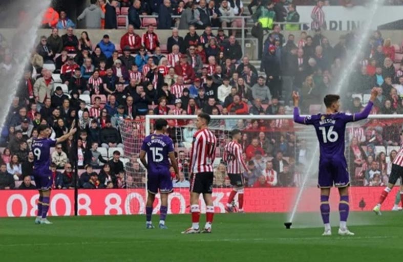 وتابعت أن مباراة سندرلاند وأكسفورد توقفت فجأة بسبب تشغيل رشاشات الماء في منتصف المباراة وسط دهبة من لاعي الفريقين معاً.