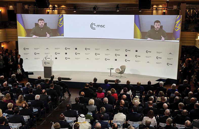 شدد الرئيس الأوكراني فولوديمير زيلينسكي على أن تأخير إرسال الأسلحة لبلاده خطأ كبير. وقال زيلينسكي في مداخلة عبر الفيديو أمام مؤتمر ميونيخ للأمن في ألمانيا الجمعة: نحن بحاجة إلى تسريع تسليم الأسلحة لأوكرانيا ولا بديل لذلك، مضيفاً أن أوكرانيا بحاجة إلى طائرات مقاتلة في أسرع وقت.كما أردف أن الكرملين جلب الدمار إلى أوروبا، مؤكداً أن أوكرانيا يجب أن تكون عضواً في الاتحاد الأوروبي وحلف الناتو.