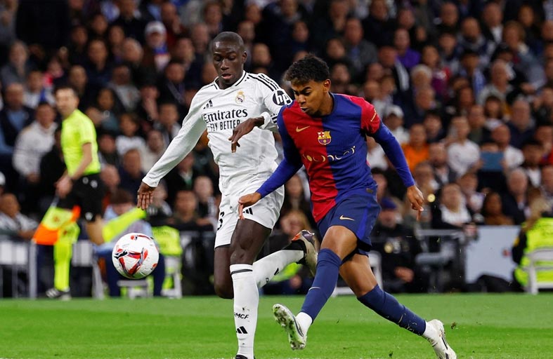 أدان ريال مدريد العنصرية التي صدرت عن بعض مشجعيه تجاه لاعبي برشلونة، بمن فيهم الشاب لامين جمال وأليخاندرو بالديه، خلال "الكلاسيكو" السبت الذي انتهى بخسارة الملكي بأربعة أهداف من دون رد في المرحلة 11 من الدوري الإسباني لكرة القدم.