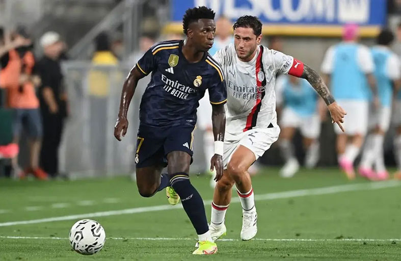 قلب ريال مدريد الإسباني تخلفه بهدفين نظيفين أمام ميلان الإيطالي الى فوز 3-2 في مباراة ودية اقيمت على ملعب روز بول في باسادينا (ولاية كاليفورنيا) في اطار استعدادات الفريقين للموسم الجديد.