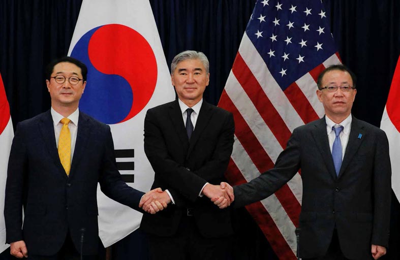 قال مبعوث سول إلى كوريا الشمالية أمس الثلاثاء إن كوريا الجنوبية واليابان والولايات المتحدة ستنسق العقوبات وتسد الثغرات في نظام العقوبات الدولي على كوريا الشمالية.