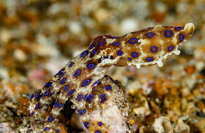 وسرعان ما تعرف الخبراء والمشاهدون على المخلوق، وهو أخطبوط ذو حلقات زرقاء، معروف بسمّه القاتل.
