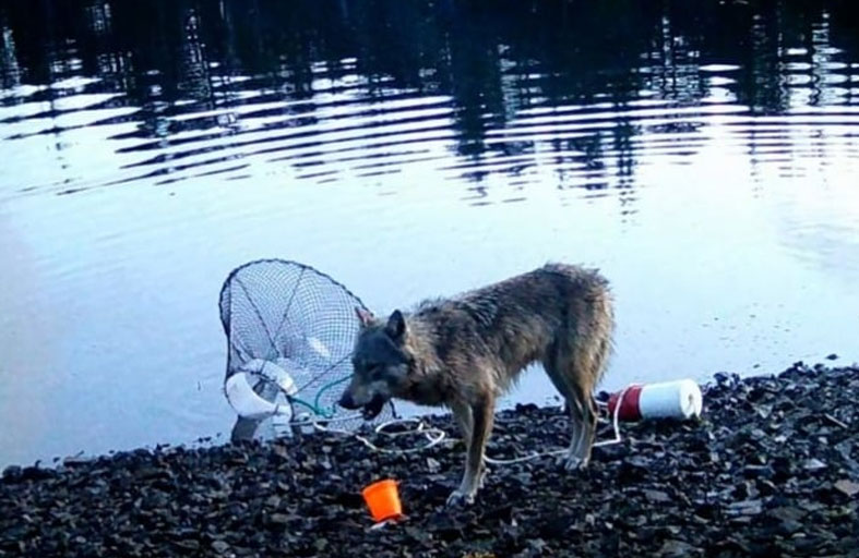 وكان القائمون على البرنامج قد لاحظوا تلفاً متكرراً في الفخاخ، ما دفعهم للاعتقاد بأن دباً أو ذئباً يقف وراء ذلك، لكن عمق المياه التي وُضعت فيها بعض الفخاخ جعل هذا الاحتمال مستبعداً، باعتبار أن تلك الحيوانات لا تغوص. وكشف العلماء مفاجأة غير متوقعة بعد نصب كاميرات مراقبة، إذ ظهر الذئب وهو يسبح نحو الشاطئ ممسكاً بعوّامة مربوطة بالفخ، قبل أن يُسقطها على الرمال ويبدأ بسحب الحبل حتى ظهر الفخ من تحت الماء.