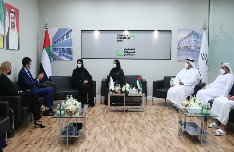 زارت معالي سارة بنت يوسف الأميري وزيرة دولة للتكنولوجيا المتقدمة "مجمع توازن الصناعي" التابع لشركة "توازن القابضة"، المنطقة الصناعية المتكاملة ذات البنية التحتية المتقدمة.