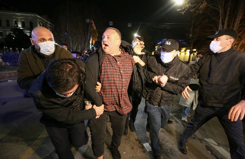 وتطمح هذه الجمهورية السوفياتية السابقة، التي شهدت تدخّلاً عسكرياً روسياً في العام 2008، إلى الانضمام رسمياً إلى الاتحاد الأوروبي وحلف شمال الأطلسي، وهو اتجاه اتخذ بعد “ثورة الورود” في العام 2003. وأوصلت هذه الثورة إلى السلطة ميخائيل ساكاشفيلي الموالي للغرب، وهو الآن في السجن حيث يندّد بانتقام سياسي.