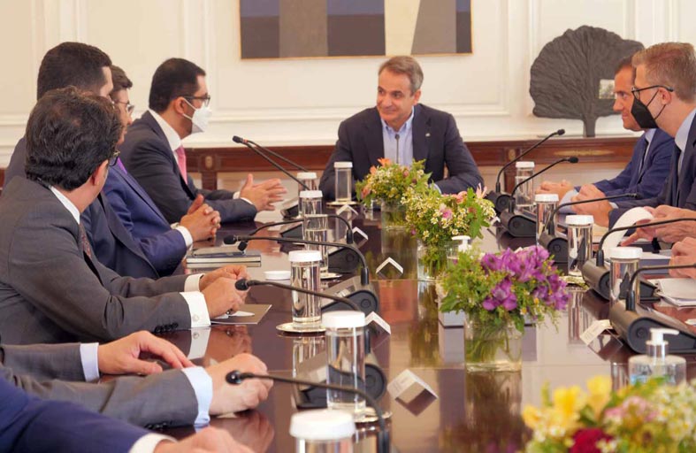 التقى معالي الدكتور سلطان بن أحمد الجابر، وزير الصناعة والتكنولوجيا المتقدمة، مع معالي كيرياكوس ميتسوتاكيس، رئيس الوزراء اليوناني، وذلك خلال زيارته إلى أثينا. كما اجتمع معاليه مع كل من معالي نيكوس ديندياس، وزير الخارجية، ومعالي سبريذون أدونيس جورجيادس، وزير التنمية والاستثمار، ومعالي كوستاس سيكريكاس، وزير البيئة والطاقة، وغيرهم من المسؤولين في الحكومة اليونانية وكذلك في القطاع الخاص، وذلك بحضور سعادة سليمان المزروعي، سفير الدولة لدى اليونان، وسعادة مصبح الكعبي، الرئيس التنفيذي لقطاع الاستثمار في شركة مبادلة للاستثمار، وحمد الحمادي، المدير التنفيذي لمحفظة الطاقة والمرافق في القابضة "ADQ".