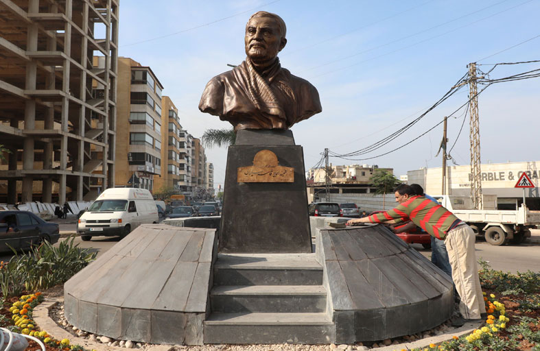 يتفقد المهندس المعماري محمد مهدي قاعدة التمثال التي صممها بنفسه، قائلاً: “أُريد توسيع المفاصل لإبراز الطول، وإظهار أن لهذا الشخص مكانة عالية”. على هاتفه المحمول يستعرض بعض المقاطع، ويضحك لفترة وجيزة، عندما يُصادف تغريدة بالعربية من أفيخاي أدرعي، المتحدث باسم الجيش الإسرائيلي، ينتقد فيها التمثال، قائلاً للبنانيين: “هل نُهنئكم على هذا الاحتلال الإيراني؟».