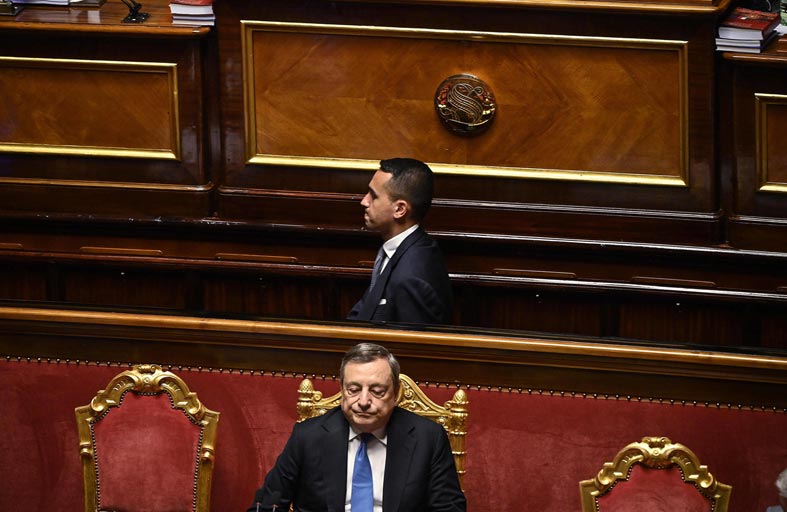 «الأمور تترنح منذ عدة أشهر داخل الأغلبية، يوضح مارك لازار، أستاذ التاريخ وعلم الاجتماع السياسي في معهد العلوم السياسية بباريس ورئيس مدرسة لويس الحكومية في روما، وأصبح وضع ماريو دراجي أكثر تعقيدًا، وأصبحت السهام التي يتلقاها من الرابطة وحركة 5 نجوم أكبر. تصاعدت التوترات في الأيام الأخيرة بسبب موقف جوزيبي كونتي، رئيس الوزراء السابق وعلى رأس حركة 5 نجوم”، الى ان ألقى ماريو دراجي المنديل يوم الخميس. لقد تمت المصادقة على خطة المساعدة البالغة 23 مليار يورو لدعم العائلات والشركات في مواجهة التضخم وارتفاع أسعار الطاقة التي قدمها دراجي إلى البرلمان في ذلك اليوم. ولكن، اعتقادًا منها بأن هذه المساعدة لم تكن كافية، وتحت ذريعة بناء محرقة نفايات في روما، وهو ما تعارضه، قاطعت حركة 5 نجوم التصويت.