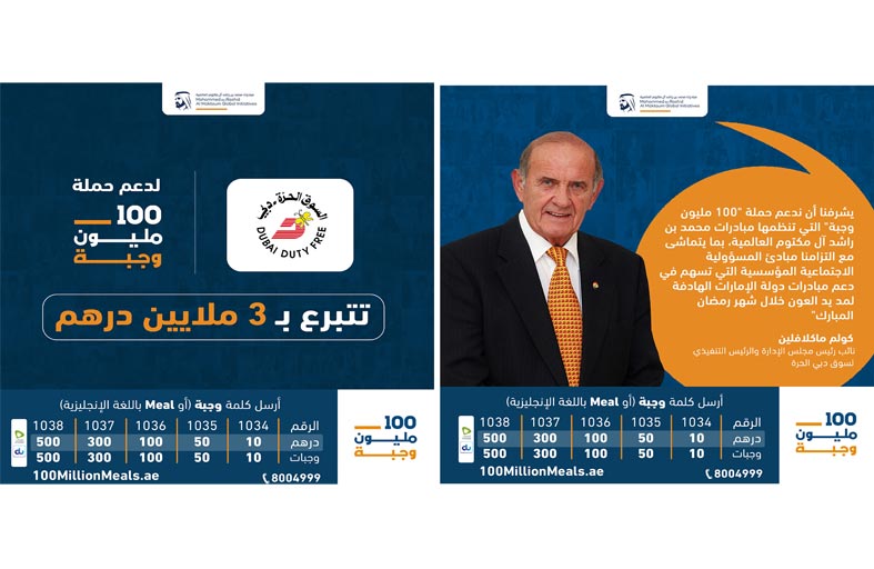 سوق دبي الحرة تقدم 3 ملايين درهم دعما لحملة 100 مليون وجبة