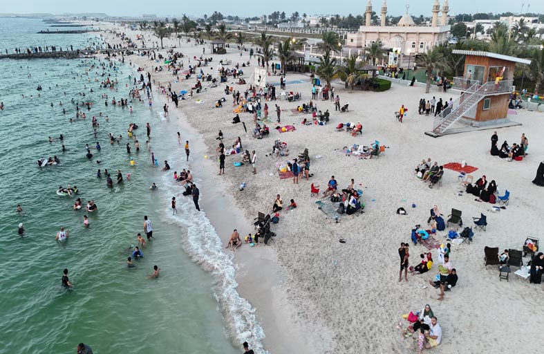 شاطئ الحمرية يشهد إقبالاً كثيفاً من المواطنين والمقيمين في أيام عيد الأضحى المبارك