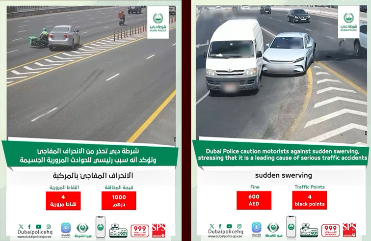 شرطة دبي تحذر من الانحراف المفاجئ على الطرق