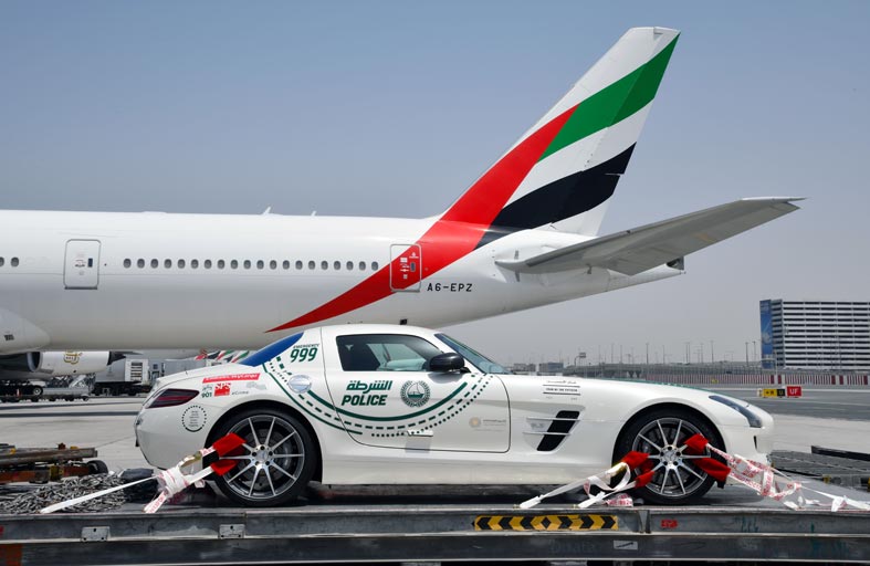 • طيران الإمارات تتولى شحن سيارة شرطة دبي إلى موقع السباق في إيطاليا