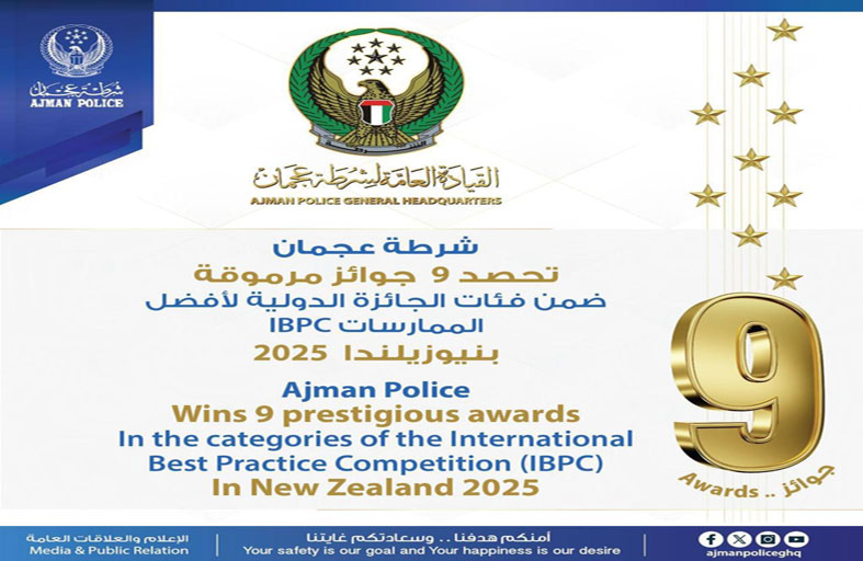 شرطة عجمان تحصد 9 جوائز ضمن الجائزة الدولية لأفضل الممارسات بنيوزلندا