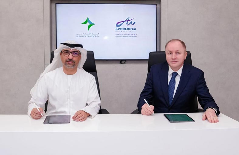وقعت هيئة الصحة بدبي مذكرة تفاهم مع "مجموعة عالم أبولونيا" لطب وتقويم أسنان الأطفال بهدف تعزيز الخدمات الصحية المقدمة في المدارس الخاصة في إمارة دبي ورفع مستوى التوعية بضرورة المحافظة على صحة الفم والأسنان في المجتمع المدرسي وذلك ضمن حرصها على تحقيق أعلى مستويات الرعاية الصحية في المجتمع، لاسيما في أوساط طلبة المدارس.