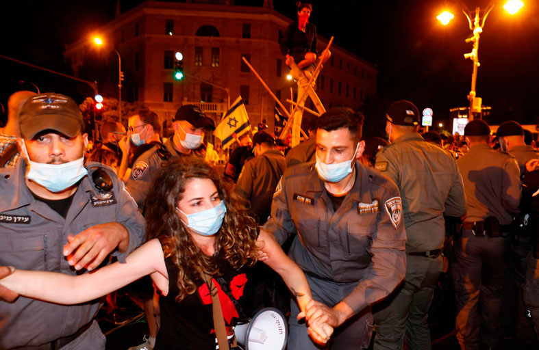 تظاهر آلاف المحتجين المطالبين برحيل بنيامين نتانياهو مجدّداً خارج المقرّ الرسمي لرئيس الوزراء الإسرائيلي في القدس حيث أعلنت الشرطة أن ثلاثة من رجالها جرحوا في صدامات تخللت التجمع، وأنها اعتقلت ثلاثين شخصا.