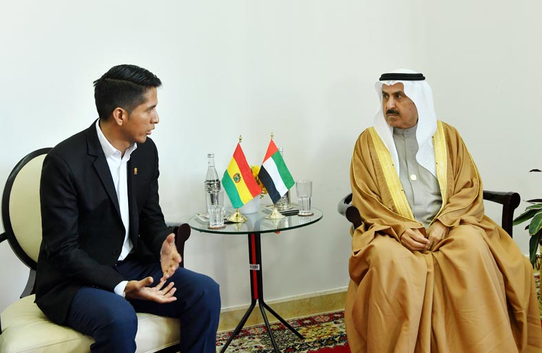 من جانبه أكد معالي أندرونيكو رودريغيز ليدزما رئيس مجلس الشيوخ في جمهورية بوليفيا أهمية تعزيز العلاقات بين دولة الإمارات وبوليفيا خاصة ما يتعلق بالجانب الاقتصادي سيما أن دولة الإمارات تعتبر من الدولة المتطورة اقتصاديا على الصعيد الدولي.