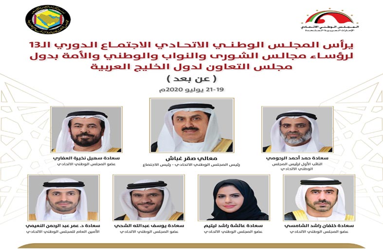 إلى ذلك تعقد لجنة التنسيق البرلماني و العلاقات الخارجية المنبثقة عن الاجتماع الدوري، اجتماعا " عن بعد" يوم 19 يوليو الجاري برئاسة سعادة حمد الرحومي النائب الأول لرئيس المجلس الوطني الاتحادي لدراسة جدول أعمال الاجتماع الدوري الثالث عشر، وإعداد مسودة بيان رئيسي للاجتماع، ومتابعة تنفيذ قرارات وتوصيات الاجتماع الدوري. ويشارك في الاجتماع سعادة يوسف عبدالله الشحي عضو المجلس الوطني الاتحادي وسعادة الدكتور عمر النعيمي الأمين العام للمجلس.