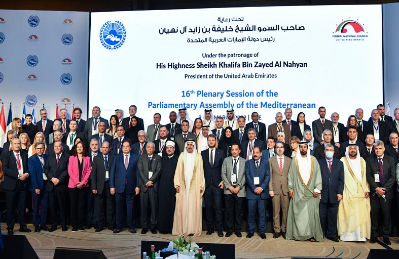 تحت رعاية صاحب السمو الشيخ خليفة بن زايد آل نهيان رئيس الدولة "حفظه الله"، بدأت اجتماعات الجمعية العامة السادسة عشرة لبرلمان البحر الأبيض المتوسط الذي تستضيفه دولة الإمارات بدبي على مدى يومين بحضور "120" مشاركا يمثلون برلمانات وحكومات ومؤسسات حكومية ومدنية، في سابقة هي الأولى التي ينعقد فيها هذا الاجتماع في دولة برلمانها عضو منتسب في برلمان البحر المتوسط، حيث سيتم خلال الاجتماع اعتماد العضوية الدائمة للمجلس الوطني الاتحادي في برلمان البحر الأبيض المتوسط.